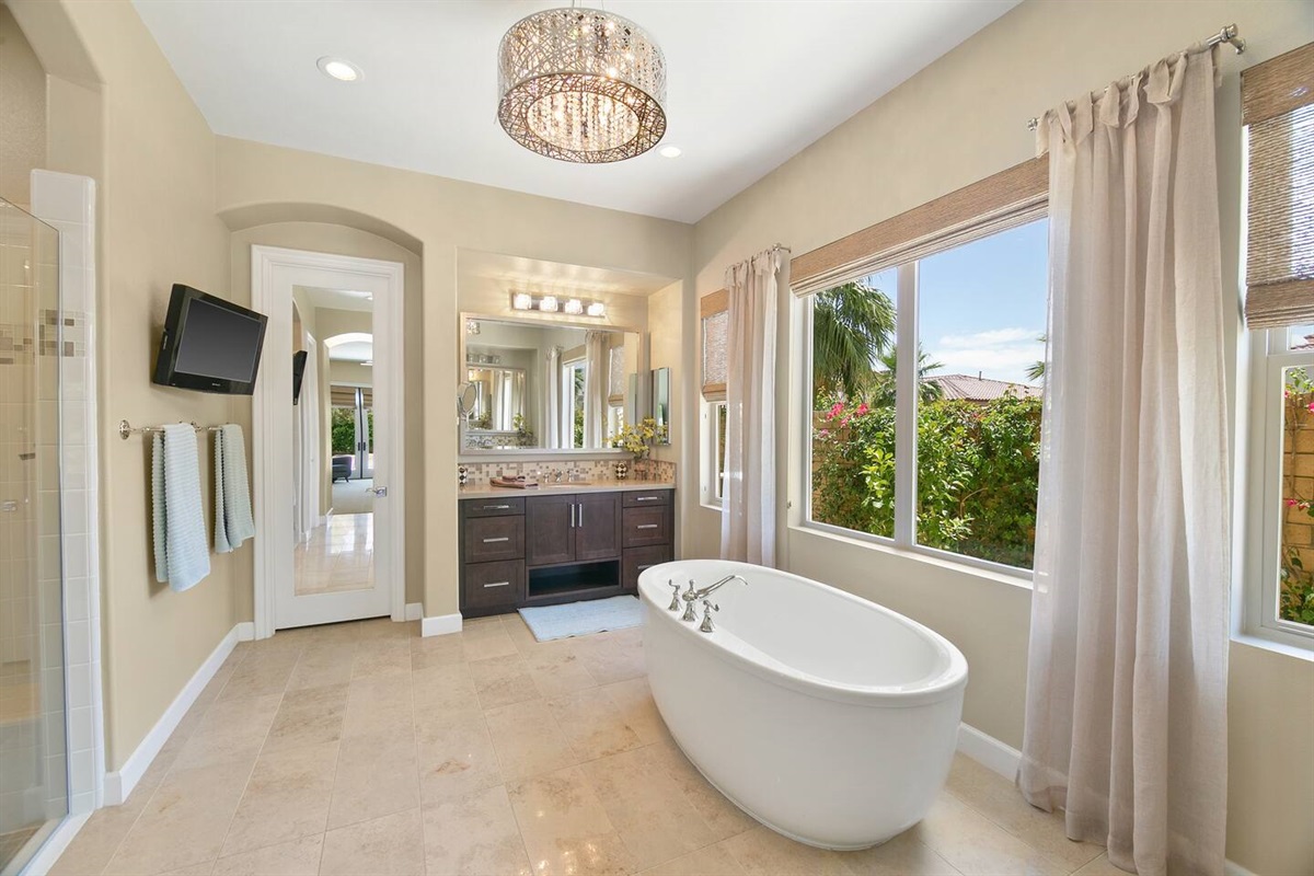 4 Bedrooms • 5 Bathrooms (4 full, 1 half) 5 Baths (4 full, 1 half) • Sleeps 7-10Escape to one of the newest communities in PGA West. There is no better way to enjoy the California desert indoor / outdoor lifestyle than in this massive open space layout. The home opens through giant 8 foot doors into a California room overlooking the pool and mountainous backdrop. Bring the whole family and some friends to enjoy a vacation full of Swimming, Golf on the Greg Norman course, World class dining, privacy and relaxation. Only 2.5 Miles to Coachella and Stagecoach festivals.